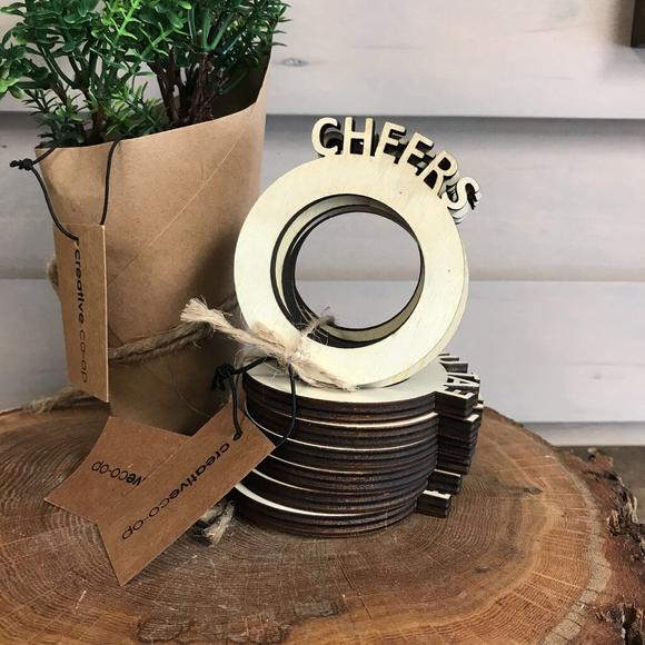 Cheers and Eat Up wooden napkin rings