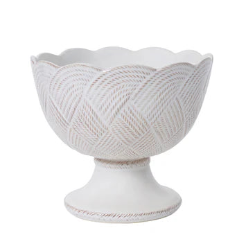 Bring warmth to the table or countertop with this footed bowl that features our timeless Mystic Knot motif of intricate, interwoven braiding that is richly textural and endlessly beautiful. Evoking the weathered and rustic character of a seaside cottage, the soft whitewash finish works just as well in modern spaces to display everything from fruit to desserts to fresh-baked bread.